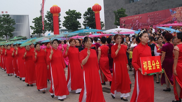 比赛在千人同跳一曲广场舞展演(串烧)和模特走秀中开场,当日,由介休分会、灵石分会、祁县分会、华雅分会等舞蹈队带来包括《会哥哥》、《圪梁梁》、《舞动中国》、《sex bowb》等十二个参赛节目。参赛者们激情似火,活力四射,跳出精气神,舞出正能量,为群众们奉献了一场精美的文化盛宴。