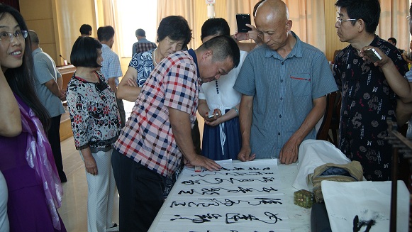 颉林老师主讲了草书的入门,阐述笔画如何简略、如何连绵。除草书外,他还简单的讲解了唐代诸家楷书和北魏名碑。他认为书法是一种艺术,学艺从来就应该老老实实,教导学员扎实的功底是为日后书法艺术奠定坚实的基础。颉林老师现场点评学员作品,拓展了学员们的艺术视野,提高了书法技艺。