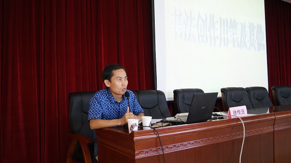 徐传法老师作品以行草见长。他主张行气一脉贯注,笔法明朗清爽,结字秀美,气息纯正,格调清雅。现场对学员作品进行点评,交流互动,学员们夯实了理论基础,提高了书法技艺。