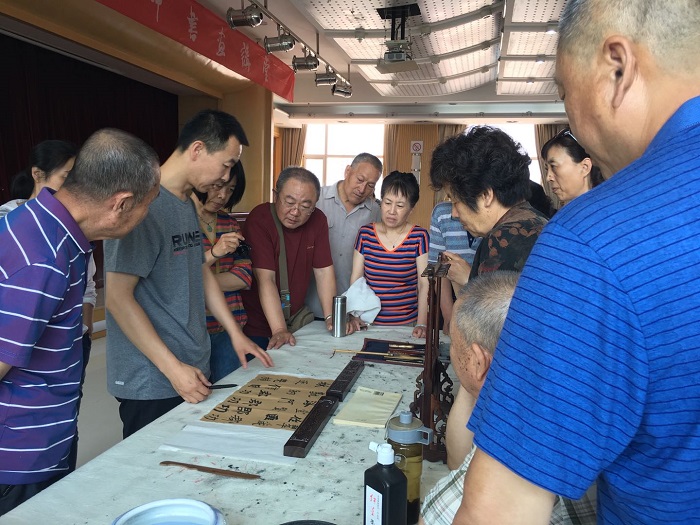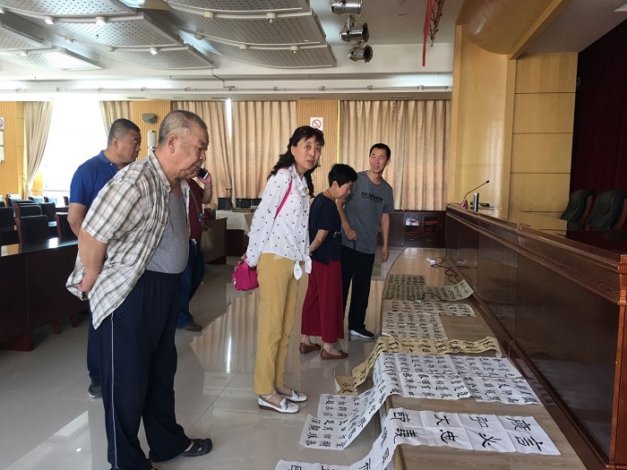 魏楷由隶书产生、演变和定型过程中,其孕育着楷书的萌芽,继承汉隶风,风格多样。有豪放性,笔画坚实的《张猛龙碑》;以方笔为主,笔画工稳的《始平公碑》;以秀美、婉约为主的《张黑女墓志》。魏楷在临摹上与唐楷的主要区别:一是魏楷书写上既有书写感,又有刀刻的味道,用笔上方的、尖的,刀味实足,字有了质感。二是唐楷法度森严,而魏楷在字法有趣味,字的结构有出奇不意感觉,更有拙味。郝老师告诫学员,练魏楷选经典的魏碑作品入手,这样写的时候取得的信息量多。郝老师现场示范笔画并点评学员作品。